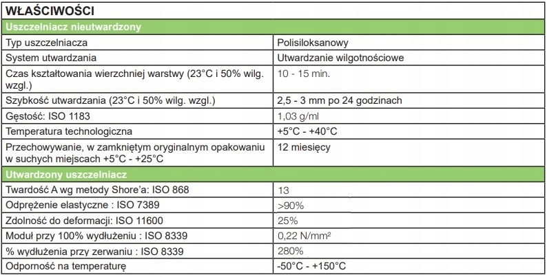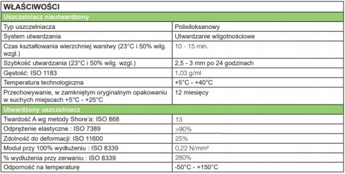 • Neutralnie utwardzane, oksymowe, jednoskładnikowe szczeliwo silikonowe (RTV-1)