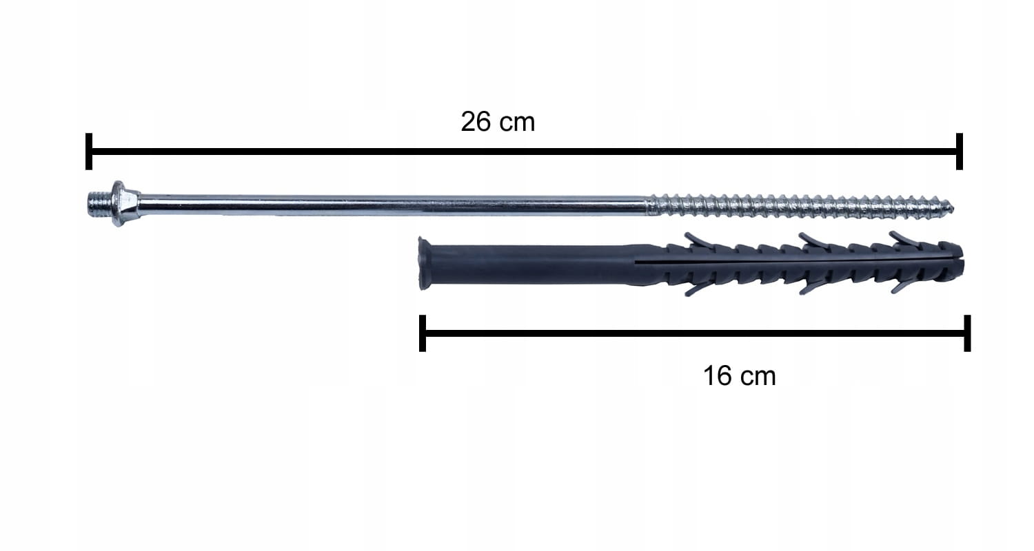 Śruba dwugwintowa zakończona z jednej strony standardowym gwintem metrycznym M8 a z drugiej wkrętem z kołkiem rozporowym