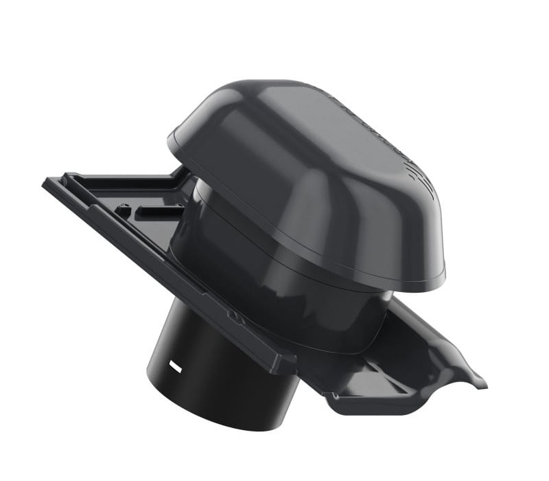 Wywietrznik Wentylacyjny Aluminiowy - jest wyposażony w odpływ kondensatu oraz kratkę zapobiegającą dostawaniu się niepożądanych przedmiotów oraz zwierząt do kanału odpowietrzającego. Dzięki podstawie odwzorowującej oryginalną dachówkę oraz zastosowaniu systemowej rury wywiewnej, montaż produktu jest wyjątkowo łatwy i umożliwia szybkie połączenie kominka do systemów wentylacji/odpowietrzania za pomocą systemowych rur przyłączeniowych. Odpowietrzając instalację umożliwia wyrównanie ciśnienia powietrza w rurach oraz usuwanie gazów kanałowych