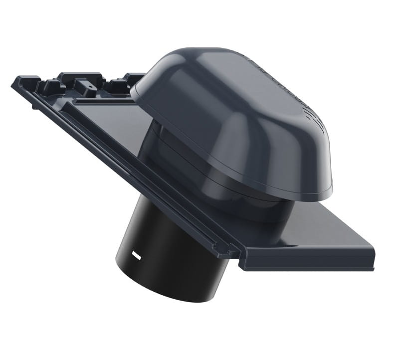 Wywietrznik Wentylacyjny Aluminiowy - jest wyposażony w odpływ kondensatu oraz kratkę zapobiegającą dostawaniu się niepożądanych przedmiotów oraz zwierząt do kanału odpowietrzającego. Dzięki podstawie odwzorowującej oryginalną dachówkę oraz zastosowaniu systemowej rury wywiewnej, montaż produktu jest wyjątkowo łatwy i umożliwia szybkie połączenie kominka do systemów wentylacji/odpowietrzania za pomocą systemowych rur przyłączeniowych. Odpowietrzając instalację umożliwia wyrównanie ciśnienia powietrza w rurach oraz usuwanie gazów kanałowych