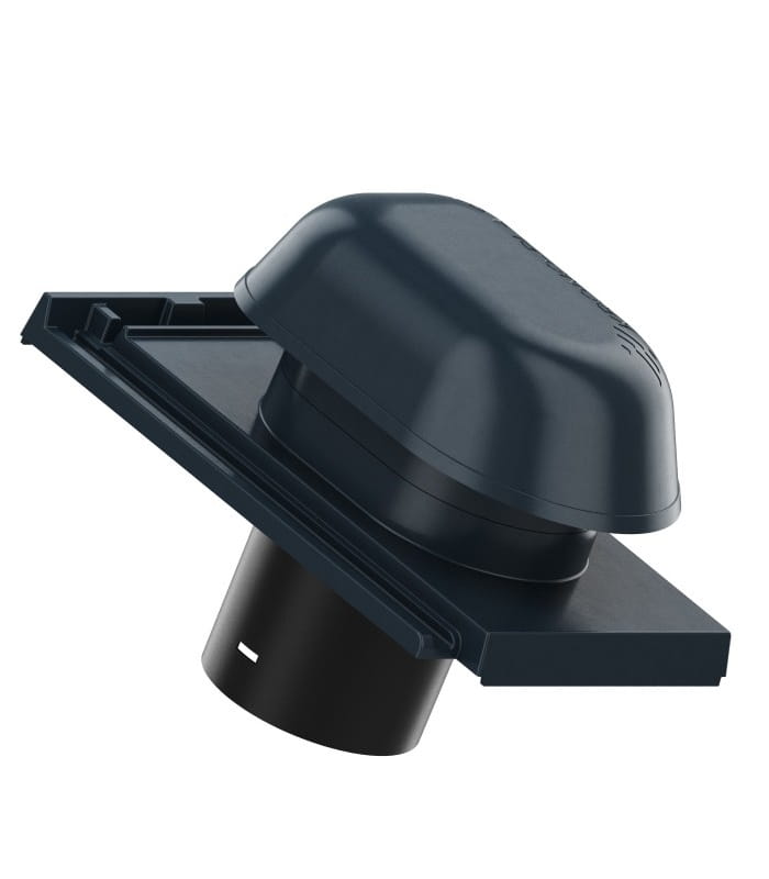 Wywietrznik Wentylacyjny Aluminiowy - jest wyposażony w odpływ kondensatu oraz kratkę zapobiegającą dostawaniu się niepożądanych przedmiotów oraz zwierząt do kanału odpowietrzającego. Dzięki podstawie odwzorowującej oryginalną dachówkę oraz zastosowaniu systemowej rury wywiewnej, montaż produktu jest wyjątkowo łatwy i umożliwia szybkie połączenie kominka do systemów wentylacji/odpowietrzania za pomocą systemowych rur przyłączeniowych. Odpowietrzając instalację umożliwia wyrównanie ciśnienia powietrza w rurach oraz usuwanie gazów kanałowych