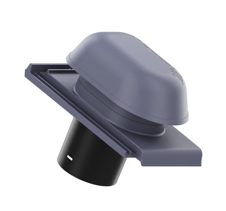 Wywietrznik Wentylacyjny Aluminiowy - jest wyposażony w odpływ kondensatu oraz kratkę zapobiegającą dostawaniu się niepożądanych przedmiotów oraz zwierząt do kanału odpowietrzającego. Dzięki podstawie odwzorowującej oryginalną dachówkę oraz zastosowaniu systemowej rury wywiewnej, montaż produktu jest wyjątkowo łatwy i umożliwia szybkie połączenie kominka do systemów wentylacji/odpowietrzania za pomocą systemowych rur przyłączeniowych. Odpowietrzając instalację umożliwia wyrównanie ciśnienia powietrza w rurach oraz usuwanie gazów kanałowych