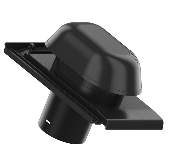 Wywietrznik Wentylacyjny Aluminiowy - jest wyposażony w odpływ kondensatu oraz kratkę zapobiegającą dostawaniu się niepożądanych przedmiotów oraz zwierząt do kanału odpowietrzającego. Dzięki podstawie odwzorowującej oryginalną dachówkę oraz zastosowaniu systemowej rury wywiewnej, montaż produktu jest wyjątkowo łatwy i umożliwia szybkie połączenie kominka do systemów wentylacji/odpowietrzania za pomocą systemowych rur przyłączeniowych. Odpowietrzając instalację umożliwia wyrównanie ciśnienia powietrza w rurach oraz usuwanie gazów kanałowych