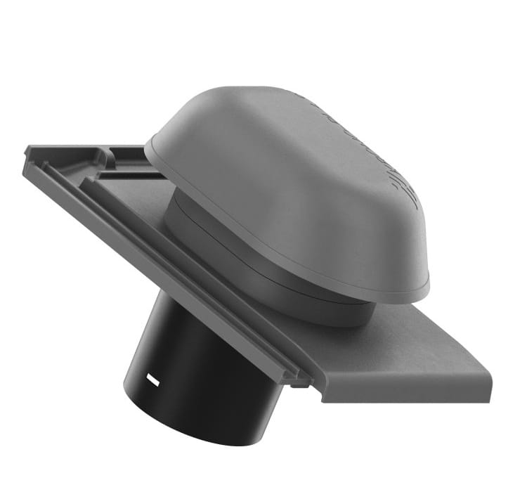 Wywietrznik Wentylacyjny Aluminiowy - jest wyposażony w odpływ kondensatu oraz kratkę zapobiegającą dostawaniu się niepożądanych przedmiotów oraz zwierząt do kanału odpowietrzającego. Dzięki podstawie odwzorowującej oryginalną dachówkę oraz zastosowaniu systemowej rury wywiewnej, montaż produktu jest wyjątkowo łatwy i umożliwia szybkie połączenie kominka do systemów wentylacji/odpowietrzania za pomocą systemowych rur przyłączeniowych. Odpowietrzając instalację umożliwia wyrównanie ciśnienia powietrza w rurach oraz usuwanie gazów kanałowych