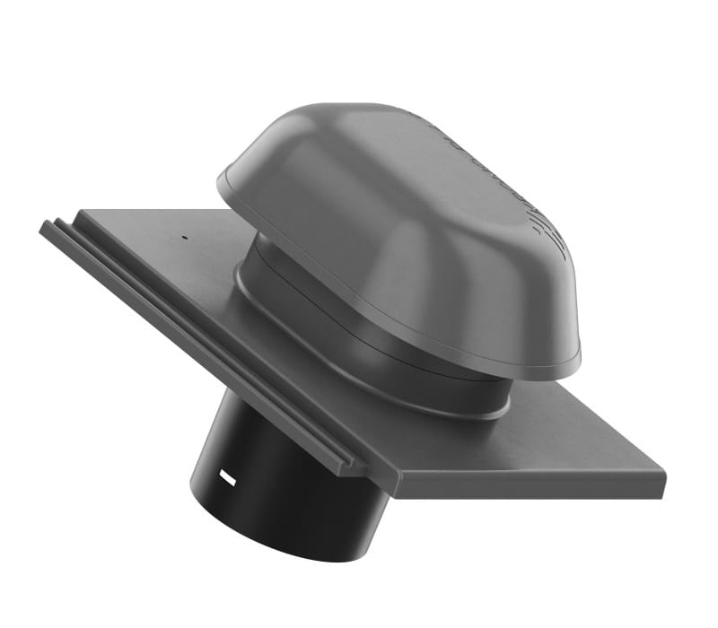 Wywietrznik Wentylacyjny Aluminiowy - jest wyposażony w odpływ kondensatu oraz kratkę zapobiegającą dostawaniu się niepożądanych przedmiotów oraz zwierząt do kanału odpowietrzającego. Dzięki podstawie odwzorowującej oryginalną dachówkę oraz zastosowaniu systemowej rury wywiewnej, montaż produktu jest wyjątkowo łatwy i umożliwia szybkie połączenie kominka do systemów wentylacji/odpowietrzania za pomocą systemowych rur przyłączeniowych. Odpowietrzając instalację umożliwia wyrównanie ciśnienia powietrza w rurach oraz usuwanie gazów kanałowych