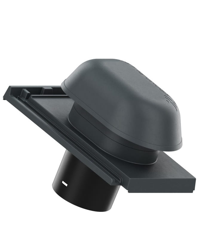 Wywietrznik Wentylacyjny Aluminiowy - jest wyposażony w odpływ kondensatu oraz kratkę zapobiegającą dostawaniu się niepożądanych przedmiotów oraz zwierząt do kanału odpowietrzającego. Dzięki podstawie odwzorowującej oryginalną dachówkę oraz zastosowaniu systemowej rury wywiewnej, montaż produktu jest wyjątkowo łatwy i umożliwia szybkie połączenie kominka do systemów wentylacji/odpowietrzania za pomocą systemowych rur przyłączeniowych. Odpowietrzając instalację umożliwia wyrównanie ciśnienia powietrza w rurach oraz usuwanie gazów kanałowych